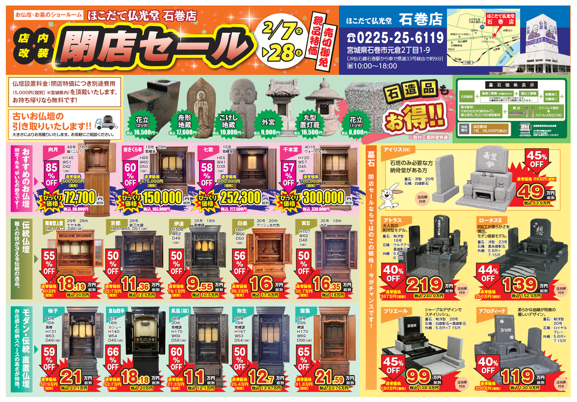 石巻店 閉店セール お墓・仏壇が大特価!