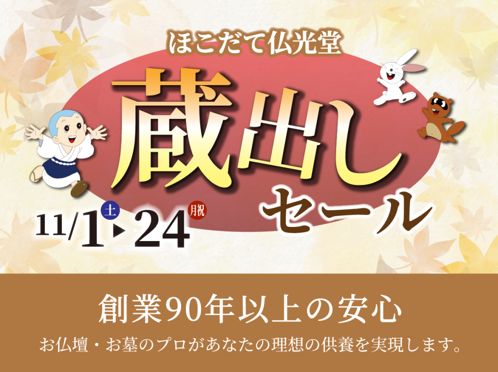 11月1日(金)~24日(月・祝)の期間、ほこだて仏光堂各店において、蔵出しセールを開催いたします!